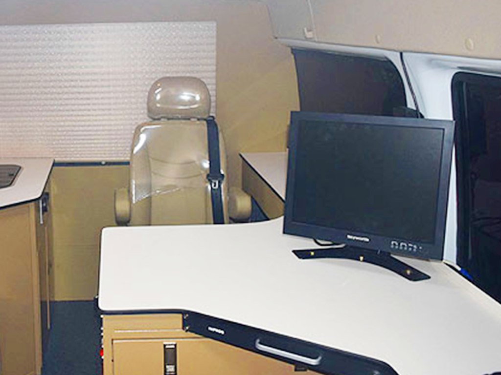 勘察车采用全顺系列客车底盘,依据GA/T 799-2008《现场勘查车技术条件》设计而成,整车集现场勘查、取证、专网通讯、移动办公、数据传输、现场实时图像监控、强光照明、供电及现场勘查等功能于一体的多功能警务用车。主要功能包含现场保护、勘查、取证、现场巡视和现场搜索,是公安部门科技强警的必备装备。